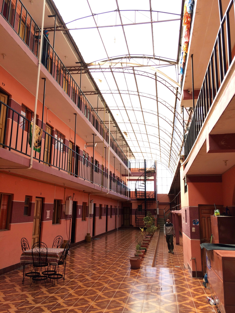 Globalement moins cher qu’au Pérou, car nous dormions la plupart du temps à quatre dans une chambre, avec salle de bains commune. La literie était étonnement correcte, quoique le sac de couchage vraiment nécessaire par endroits ! En effet, aucun hostal, aucun appartement n’est chauffé (même pas à 4300m)!