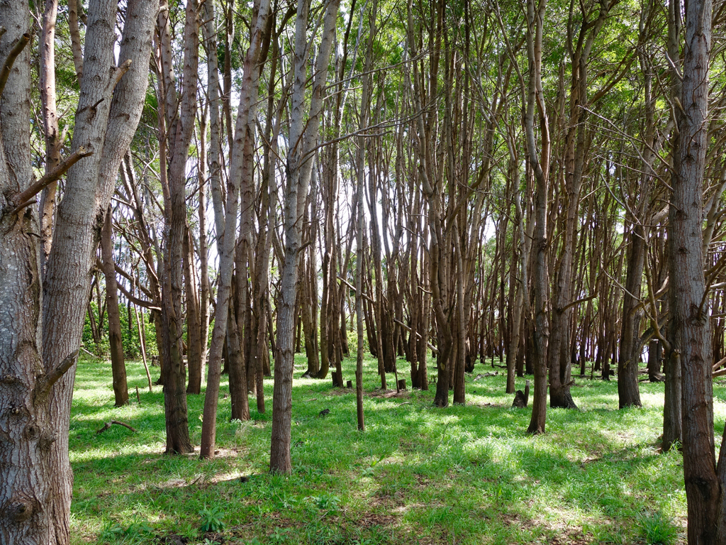 Après une nuit bien mouvementée en raison de la tempête, nous voilà prêts pour une petite randonnée qui peut-être amorcée directement depuis le camping. Sur le chemin, nous découvrons une grotte avec quelques peintures et passons dans une forêt d’eucalyptus, avant de monter vers Rano Kau, le volcan situé tout au sud de l’île.