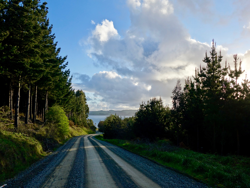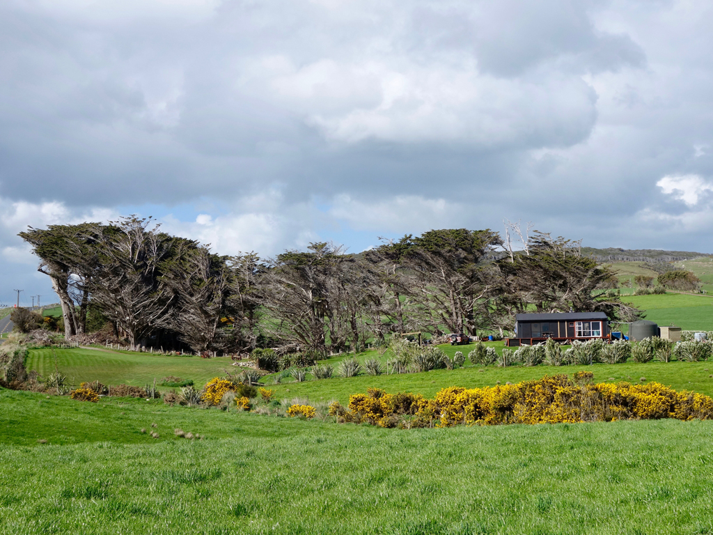 Le site pour la nuit au bord de l’eau est une nouvelle fois féerique, mais les fortes pluies et l’insistance de Melanie nous obligeront tout de même à déplacer le van à quatre heures du matin, histoire d’éviter de rester embourbé… En passant, sans s’y arrêter, la capitale régionale Invercargill, nous remontons la route à travers des pâturages à perte de vue, vers le Nord.