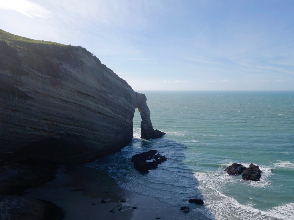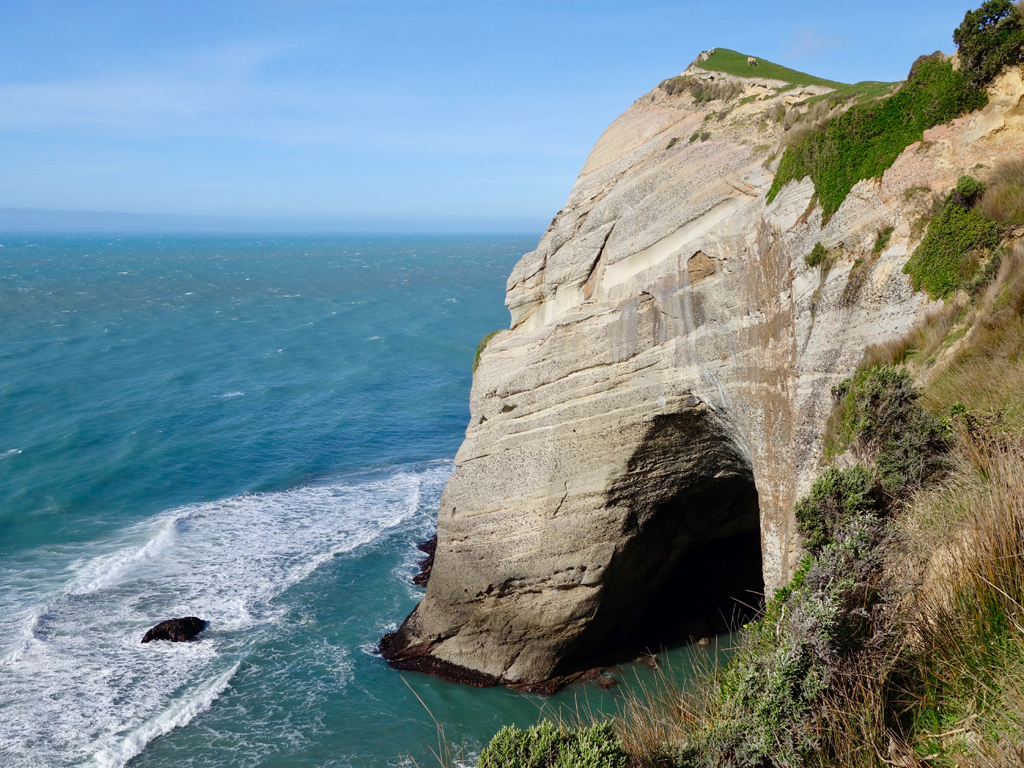 Nous passons encore à Cape Farewell, le point le plus nordique de l’île du Sud. Jolies falaises, ne pas trop s’approcher tout de même car avec le vent on pourrait facilement tomber !