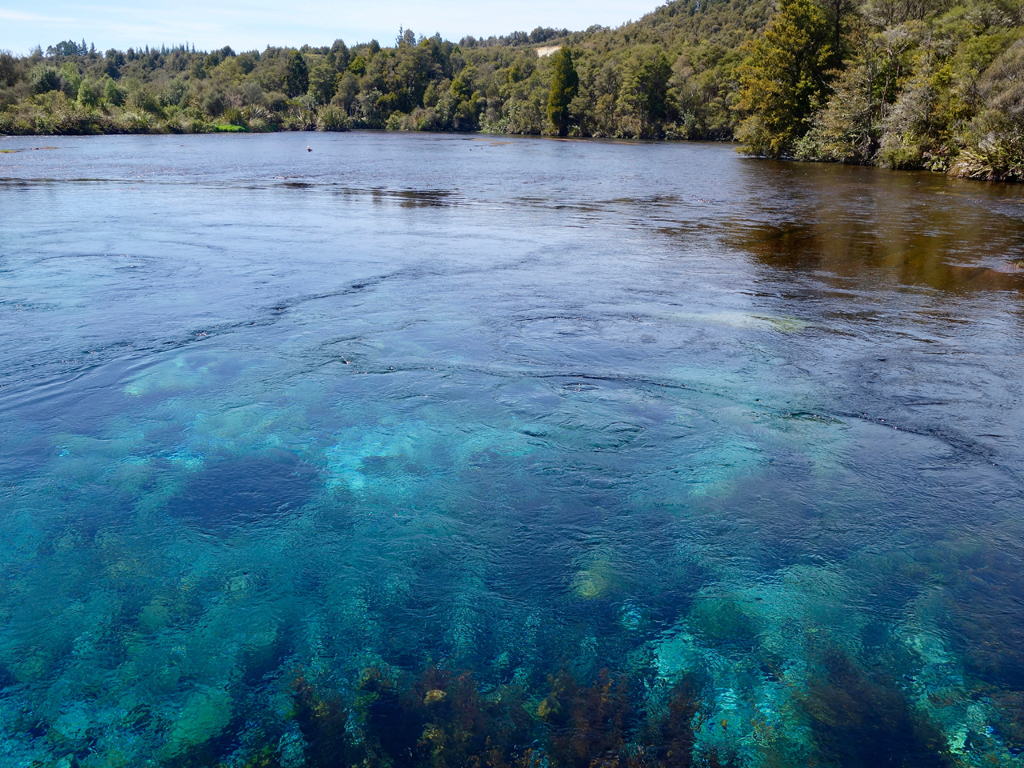 Nous prenons la direction de Farewell Spit, la tête de kiwi sur la carte. Sur la route, nous découvrons par hasard les Pupu Springs, la plus grande source d’eau claire d’Asie australe (non on ne savait pas non plus qu’on était en Asie australe). Un chemin permet de traverser cet endroit féérique, c’est super beau ! L’eau cristalline surgit du fond du lac, d’une limpidité absolue. Cet endroit est également sacré pour les Maoris donc interdiction de toucher l’eau.