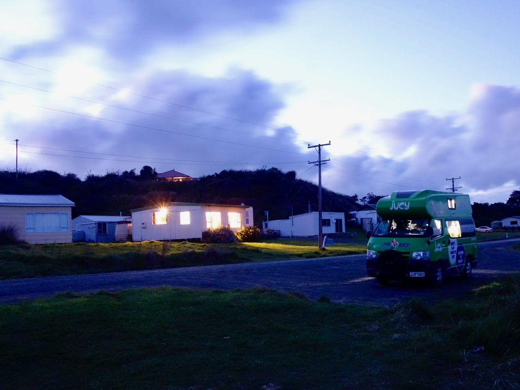 Durant trois semaines et demie, notre camper-van a très bien joué le rôle de maison portative. Tout y était : un lit confortable, une petite banquette avec table, une cuisinette et même un minuscule wc/douche ! Nous avons retrouvé une certaine routine, pensez seulement au fait que c’était la première fois depuis le voyage que nous avons dormi dans le même lit pendant si longtemps… Il ne restait que de trouver une jolie place pour s’arrêter le soir et le tour était joué. Sur l’île du Nord, nous nous sommes logés dans des backpackers, comme on appelle les hostals par là. Ce n’était jamais très grand ou luxueux, mais toujours très propre et avec une cuisine à disposition. Le Airbnb de Wellington était très bien aussi.