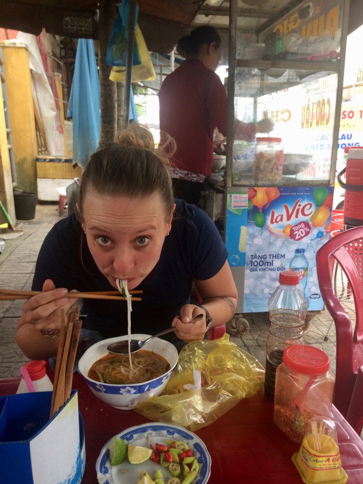 Difficile à noter, car nous avons nettement préféré la cuisine de rue découverte avant et après le tour guidé aux plats parfois un peu fades et aux saveurs aseptisées des restaurants touristiques (même s’il y a eu des belles exceptions). Mais quand il s’agit des incontournables Pho ou Bun (soupes de nouilles avec poulet Ga, bœuf Bo ou autres), Bahn Mi (pain baguette rempli avec différents ingrédients) ou du café vietnamien (de préférence glacé) partagés sur des petites chaises en plastiques parmi les locaux, c’est vraiment délicieux en plus d’être authentique!