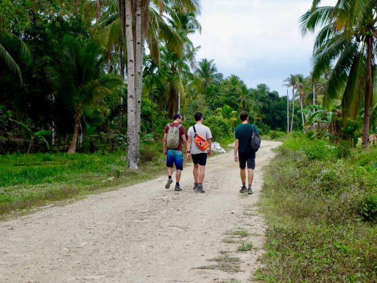 Le lendemain nous partons marcher en direction d’une cascade, à travers champs en compagnie de deux autres touristes et d’une ribambelle d’enfants du village. Après deux bonnes heures à suer sous le soleil, nous arrivons : la cascade est jolie et on irait bien se bai… plouf ! Et voilà qu’un grand serpent jaune tombe dans l’eau depuis un arbre en dessus (!), tout recroquevillé. A force de l’observer on comprend qu’il est en train d’étouffer sa proie, un rat en l’occurrence, et il finit bien sûr par l’avaler. C’est à ce moment précis que notre « guide » décide de ramener le serpent vers nous pour que les gamins qui on ramassé des pierres puissent le caillasser. Là on s’est quand même interposé, et c’est aussi dans ce genre de moment que le choc des culture est grand. Pour les philippins ce n’est qu’une bête dangereuse et pour nous c’est un pauvre et bel animal qui vient de manger et qui est inoffensif. Pour finir, le serpent aura eu la vie sauve, en tout cas pour cette journée…