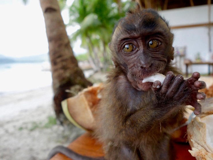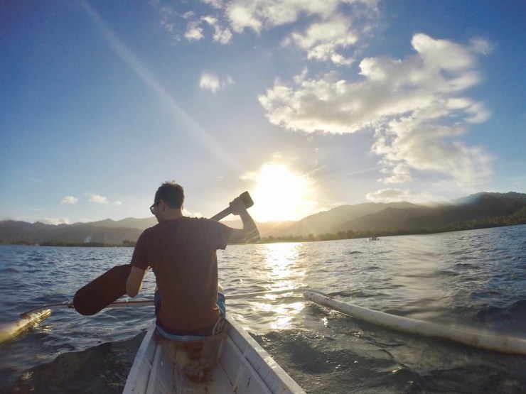 Nous trouvons un logement à l’écart du village, que nous atteignons en vingt minutes de bateau. Il s’agit d’un ensemble tout neuf de huttes qu’un expatrié d’Andorra a construit ici en collaboration avec le petit village attenant. Si l’initiative est excellente, on sent que ça vient d’ouvrir et que l’organisation n’est pas au top mais l’endroit est vraiment spectaculaire ! Nous sommes seuls face à la mer en compagnie des autres clients tous du même âge environ… Nous profitons des bateaux mis à disposition pour partir à la découverte du récif corallien proche et passons le reste de l’après-midi à faire du snorkeling et bronzer sur la petite maisonnette de pêcheurs située dans la baie. La soirée se passera principalement autour du feu de camp préparé sur la plage dans le calme absolu, magnifique !