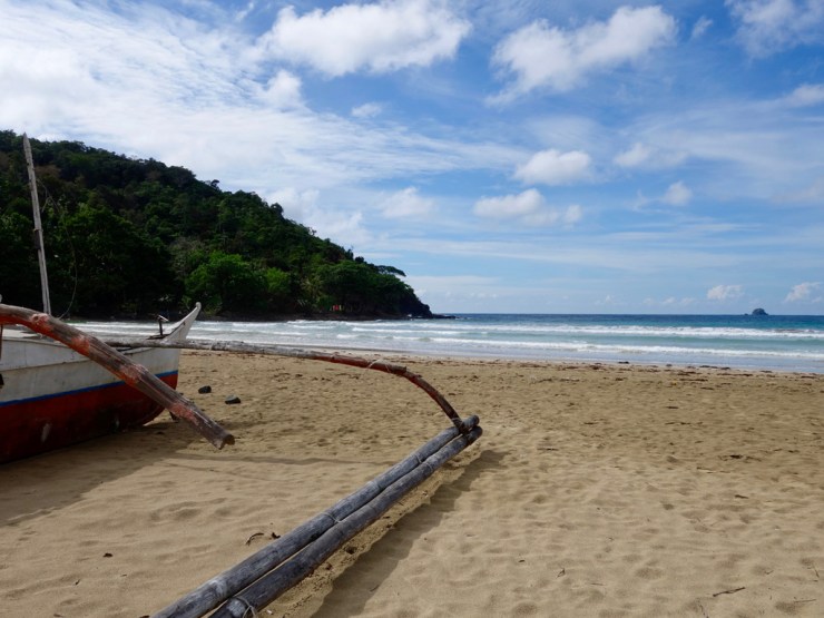 Puerto Princesa ne disposant pas de plage digne de ce nom, nous louons un scooter et une moto pour nous rendre sur Negtabon Beach, située à 30 km au nord de là. La circulation pour sortir de la ville est infernale et nous nous faisons surprendre par une bonne averse. Nous arrivons finalement sur place et le déplacement en valait la peine : sable fin bordé de palmiers, eau bleue, soleil et personne ou presque en vue, nous passons la journée à barboter et à se reposer. Au retour nous nous faisons une nouvelle fois rincer, mais en maillot de bain ce n’est pas grave.