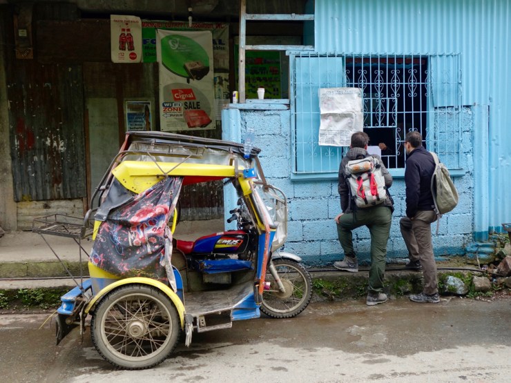 Les points de vue sont jolis et on découvre la vie le long de la route, avant de terminer sur une terrasse avec une bière. Après un souper sympathique avec musique live nous ressortons dans la rue pour revenir dans notre pension. Il doit être 21h et plus une âme qui vive. Comme nous sommes à 6km de la pension il est hors de question de marcher. Nous finissons par trouver un tricycle qui nous ramène, enfin Melanie et Claudio. Gion et Mamo sont en panne avec le leur et il leur faudra 10 minutes de plus avant d’arriver, ce qui nous a un peu inquiété…