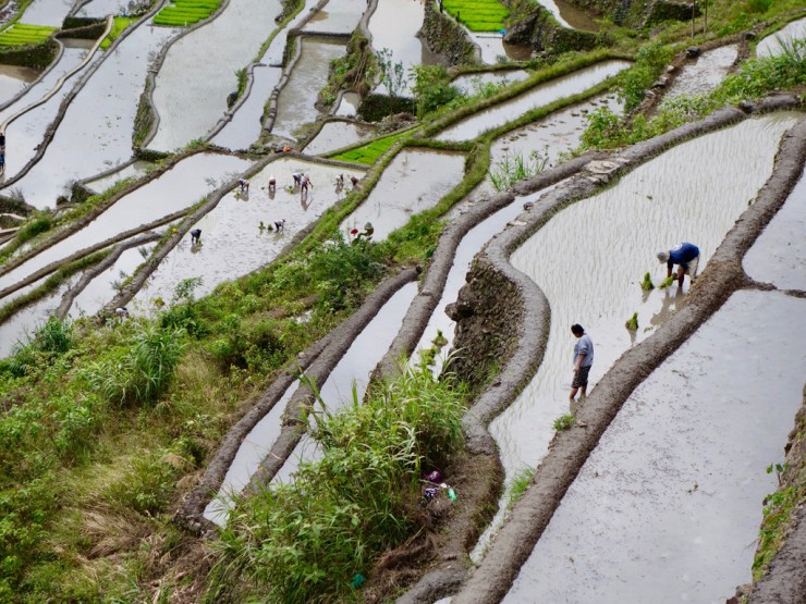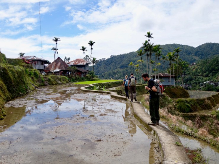 Nous arrivons au dernier jour avec nos amis, et pour finir en beauté nous décidons de faire une balade à travers les rizières de Banaue avant d’aller aux sources chaudes. La balade est plaisante, ça monte et ça descend dans tous les sens et on peut bien voir les philippins en train de planter le riz. La journée est couronnée d’un soleil radieux, c’est vraiment superbe! Puis nous négocions un transport jusqu’aux sources.