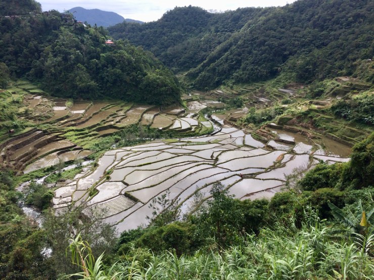 Nous partons donc et il faut dire que c’est encore plus beau que les terrasses de Batad! Elles sont toutes plantées dans une vallée a pente douce et il n’y a pratiquement aucun touriste. Les explications données sont intéressantes et les sources chaudes sont superbes! Un petit bassin naturel d’eau souffrée avec la rivière transparente à côté pour se rafraîchir, le rêve! Nous repartons tout revigorés.