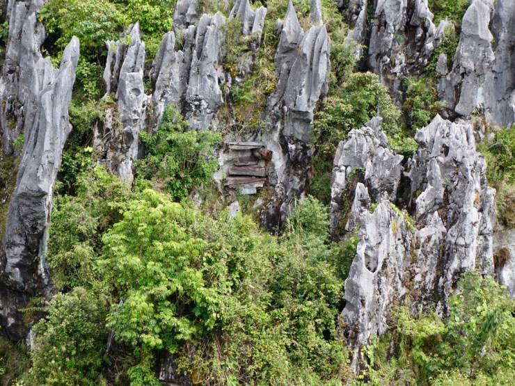 Le lendemain il fait beau et nous en profitons pour nous promener dans la forêt et à travers les rizières par des petits chemins, en découvrant les fameux hanging coffins, des cercueils suspendus à la falaise ou à l’entrée de la Lumiang Burial Cave (oui, c’est étrange…).