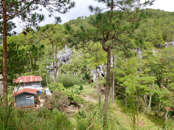 L’arrivée dans ce village de montagne, niché au milieu de pins, se fait sous une pluie torrentielle qui nous aura accompagnée pendant tout le trajet depuis Banaue. Vu que nous n’avions rien réservé, Melanie part à la recherche d’une chambre convenable dans notre budget, alors que Claudio monte la garde des sacs au sec. En revenant, elle dit toute souriante « C’est un peu plus cher que prévu, mais je suis sûre que t’aimeras ! ». Et en effet c’est exactement ce qui nous faut après les derniers logements : un mini-chalet en bois avec lits en mezzanine et vue sur les pins ! On pourrait presque se croire au Canada ou en Suisse.