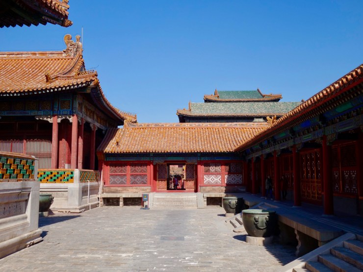 La visite de la cité nous prend trois bonnes heures, voir plus, et sincèrement c’est très beau ! Peu de gens en comparaison de ce que nous nous attendions avec un beau soleil pour faire ressortir les couleurs des bâtiments. L’exposition de céramiques vaut le détour, rien que pour apprécier le calme des cours vides de cette aile de la cité. Nous payons le supplément pour le mur aux 9 dragons et nous retrouvons une fois de plus presque seuls entre les bâtiments.