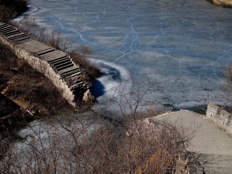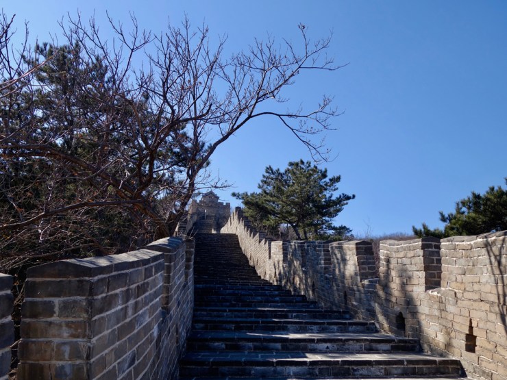 Après avoir payé le billet d’entrée au site, raisonnable (7 CHF), nous passons les tourniquets et Melanie s’arrête en disant « non! On ne peut aller qu’à gauche! », ce qui se confirme une fois demandé à la caisse. Eh merde, nous qui voulons rejoindre Huanghuacheng … à droite! Ensuite ça devient le drame, car l’ancienne partie, en partie délabrée et grimpant majestueusement les pentes, n’est pas accessible, mais surtout l’autre partie à été entièrement mal rénovée et donne un peu l’impression de se trouver à Disneyland.