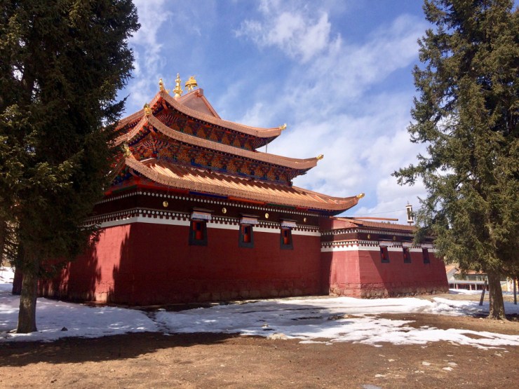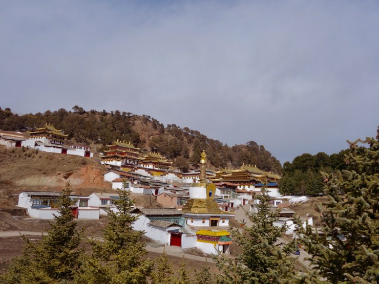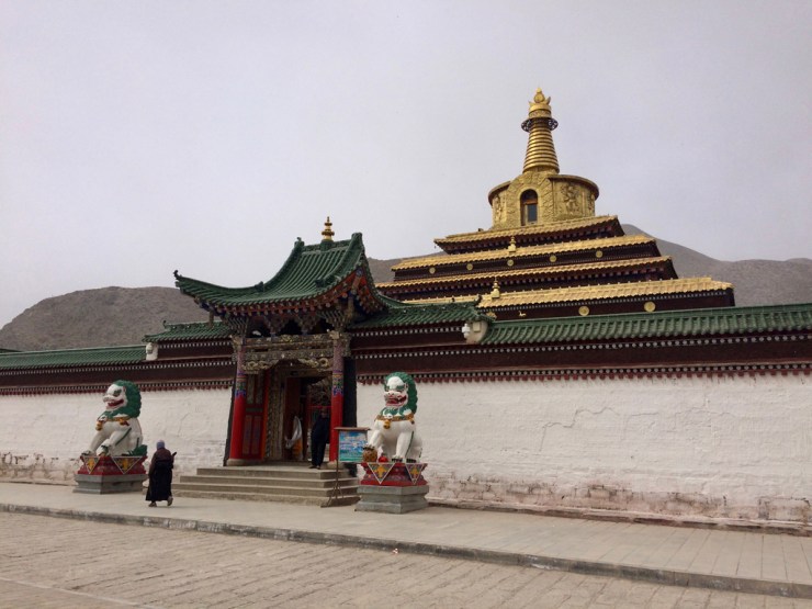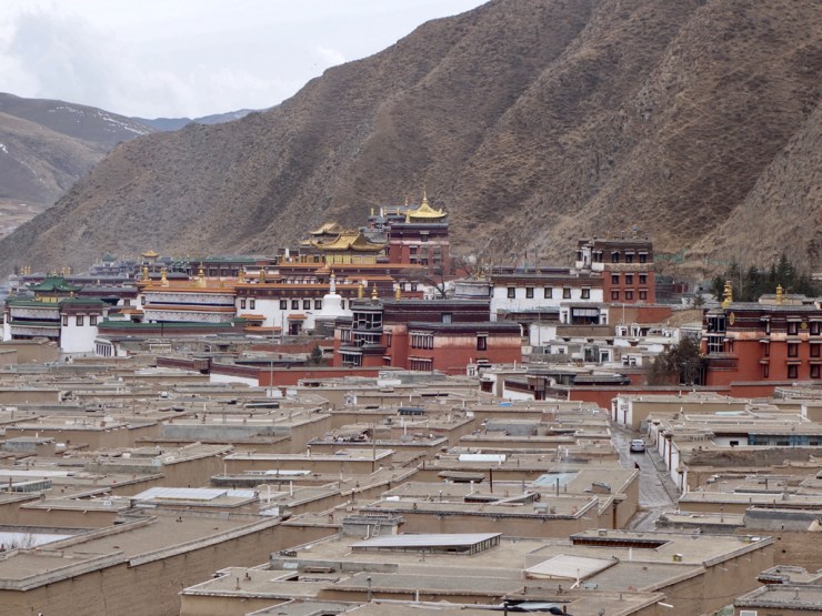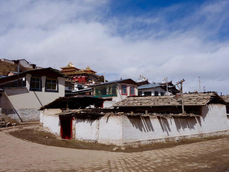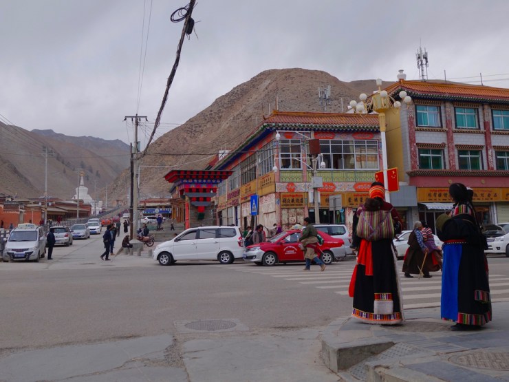 Le monastère à proprement parlé est entouré d’une ville, séparée de l’axe principal. Ici ce sont les tibétains qui vivent leur culture et religion. En habits traditionnels, les enseignes des magasins sont aussi traduites en tibétain. Nous trouvons refuge dans une auberge de jeunesse traditionnelle, et l’odeur du thé au beurre de yack ne nous quittera plus.