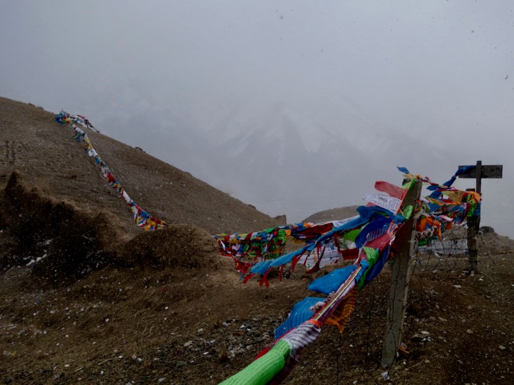 Nous montons la montagne surplombant la ville à la découverte d’un stupa décoré de drapeaux de prières et longeons une crête. Une tempête se lève et nous nous retrouvons au milieu des flocons de neige, les drapeaux claquants avec le vent. Un moment fort et intense !