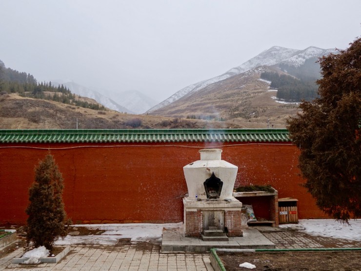 L’arrivée à Lanzhou en train, dans la gare absolument surdimensionnée, se fait tranquillement. Le train à grande vitesse a la particularité d’être plus confortable (heureusement vu que le prix double) mais renferme également une plus grande proportion de riches chinois particulièrement impolis. Un bus local plus tard, au nez et à la barbe des rabatteurs proposant un prix de taxi indécent, nous voici prêts à partir en bus, en direction de Xiahe et son fameux monastère tibétain de Labrang à 2900m.