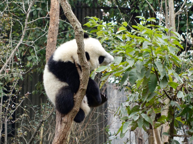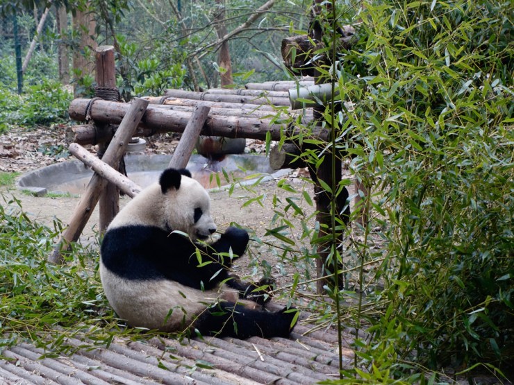 Nous nous levons de bonne heure et déjeunons avec les meilleurs raviolis vapeur du voyage, juste en face, avant de prendre un bus public en direction du centre de recherche et de conservation de pandas, situé au nord de la ville. Une fois sur place, nous sommes bluffés par le site, car l’on se sent plus dans un grand parc que dans un zoo et c’est agréable de se promener sur les collines à la découverte de l’emblème du pays.