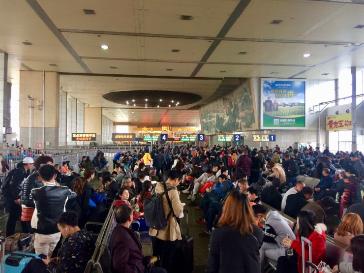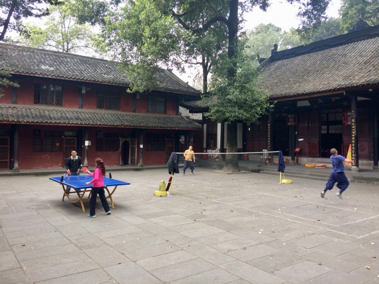 Chengdu est un petit village de 15 Mio d’habitants la capitale du Sichuan et est surtout connue pour ses pandas, ainsi que pour sa cuisine épicée (dont le poivre du Sichuan qui a la sympathique particularité de t’assommer la bouche…). Nous arrivons en fin d’après-midi au terminus des bus avec un ciel radieux et 20°C. Nous prenons directement le métro en direction de notre auberge de jeunesse. Le problème est qu’ils scannent tous les sacs en Chine et les couteaux sont évidemment interdits. Bon, on essaye, ni à Pékin ni dans les trains ils ne l’avaient remarqué. Malheureusement les agents voient notre couteau suisse aux rayons et nous demandent, en chinois, si nous en avons un, comme le cutter qu’il nous montre. « Non, Monsieur. Pas un comme ça, non ». Ensuite il veut fouiller le sac à dos à Claudio (ça tombe bien, le couteau est dans celui de Melanie), mais abandonne en voyant que nous avons l’air gentils qu’il faudrait sortir beaucoup trop de choses et il n’en a visiblement pas envie. Tant mieux, nous passons et arrivons à destination peu après, il a eu chaud notre couteau !
