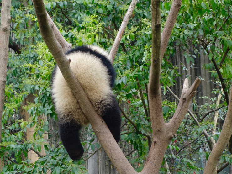 Il n’y a pas à dire, les pandas sont trop mignons super beaux! Des grands, des petits, des rouges : il sont tous en train de manger leur bambou, carrément assis dans la bouffe, ou font une petite sieste. Nous ne nous lassons pas de les observer pendant plusieurs heures en émettant de temps à autre des petits cris de joie !