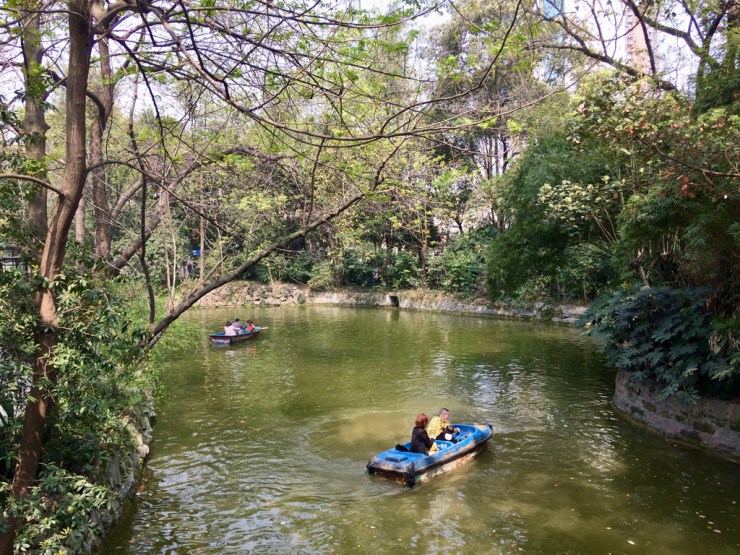 De retour au centre, nous entrons dans le People’s Park, très beau et animé : les gens pratiquent le Tai Chi, chantent, se promènent avec un petit bateau sur les lacs ou jouent au badminton. Un concentré d’énergie positive, mise encore plus en valeur par le soleil radieux de l’après-midi.