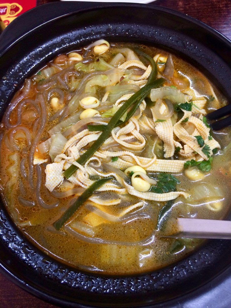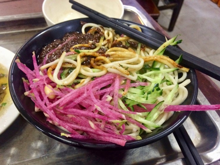 De blé, de riz, de tout ! Les nouilles sont partout et c’est clairement le plat que nous avons le plus mangé. En soupe ou pas, avec viande, légumes, tofu, tripes tout est possible. C’est la cuisine du nord dans toute sa splendeur et les nouilles réchauffent quand il fait froid dehors et dans les restaurants. A manger en faisant du bruit bien sûr ! Partout, dans les trains sous forme de cup noodles à préparer soi-même par exemple.