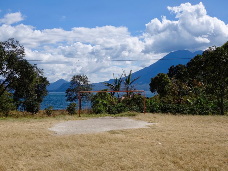 Le matin suivant nous sommes debout de bonne heure et après un banana-milkshake et un café nous nous baignons à nouveau afin de bien nous réveiller (l’eau doit être à environ 20°C) et décidons de faire une petite ballade le long de la côte jusqu’au village suivant pour bien mériter notre desajuno. Le village où nous arrivons n’est pas du tout touristique et nous faisons le tour de celui-là avant de prendre une lancha nous mènera ensuite à San Pedro La Laguna, endroit le plus connu du lac. Et en effet, on ressent plus le Gringolandia ici. Plein de bateaux, plein de bars, plein de stands de souvenirs et du bruit ! Nous y passerons tout de même une bonne heure, confortablement assis sur une terrasse en sirotant un café-glacé et faisant des affaires : une écharpe pour Melanie et du banana- et choco-bread Pitt pour Claudio.