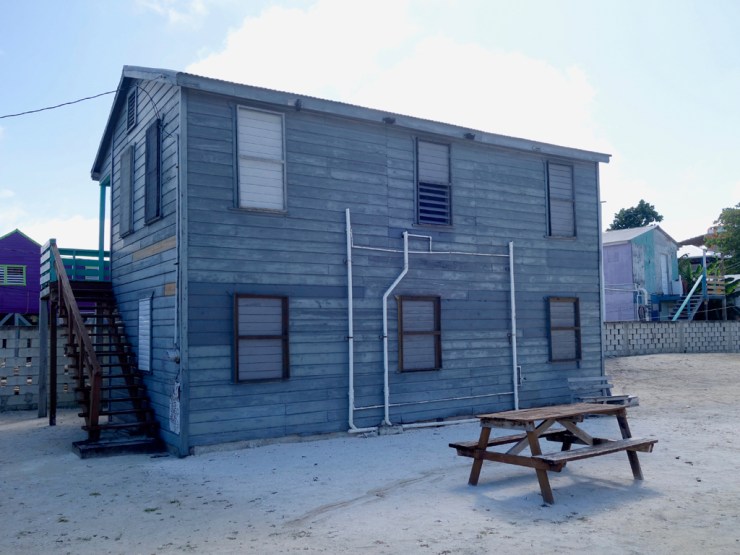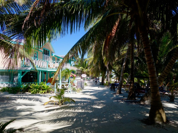 Caye Caulker n’est qu’une étroite bande de corail (300m à 1 km de large sur 8 km de long pour une hauteur maximale à 2.4m) sur la barrière de corail de la mer des Caraïbes. Ici, pas de voitures, les routes sont en sable et les seuls véhicules sont des petits karts de golf. Ici la devise est « go slow » et on ne manquera pas de vous le faire remarquer si vous marchez un peu vite. L’ambiance n’a rien à voir avec le Guatemala, on parle anglais, on peut théoriquement boire l’eau au robinet et la population est fortement métissée. L’ambiance est décontractée entre bars et guesthouses, résidences plus chères et petits magasins. L’endroit est clairement touristique mais avec tous les avantages que nous recherchons pour nos 5 jours de « plage »: confort, propreté, mer, soleil…
