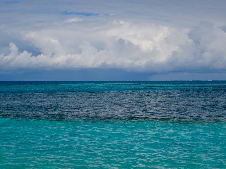 Le fond de l’air est tiède mais le vent souffle, donc clairement le temps n’est pas aux mini shorts (merci la tempête polaire au nord des USA) par contre le soleil brille de mille feux et l’eau turquoise est à 24 degrés quand même.